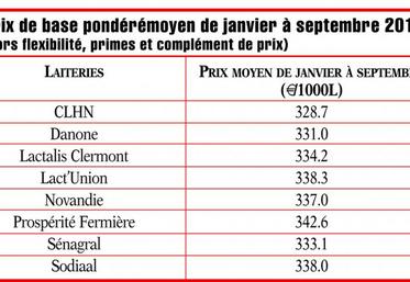 Les prix de base moyens oscillent cette année entre 328 et 342 euros les 1000L.