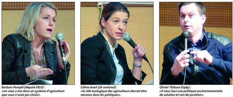 «L'environnement, c'est l'outil de travail des agriculteurs ; l'écologie est à l'environnement ce que le charançon est au grain de blé !». «Les agriculteurs sont les acteurs de l'environnement». «Nous avons diminué de 35% l'utilisation des phytos, nous sommes les premiers à s'occuper de l'environnement». «C'est le facteur qui joue le plus dans ma façon de produire. Mais nos systèmes de production sont mis à mal par certains idéologues...». Voila autant de propos de jeunes agriculteurs qui illustrent le fossé, la méfiance existant entre les écologistes et les agriculteurs. Il étaient présentés en vidéo en préambule au débat sur le thème de l'environnement organisé par les JA de la Somme à l'occasion de leur assemblée générale le 23 janvier dernier à Amiens. Un débat pour savoir si agriculteurs et écologistes peuvent s'entendre ou tout au moins se parler. Etaient donc réunis à cet effet Barbara Pompili, député de la Somme et co-présidente du groupe Europe Ecologie les Verts à l'Assemblée nationale, Céline Imart, vice présidente de Jeunes Agriculteurs en charge du dossier environnement, et Olivier Thibaut, président de l'Uplp (producteurs de lait).