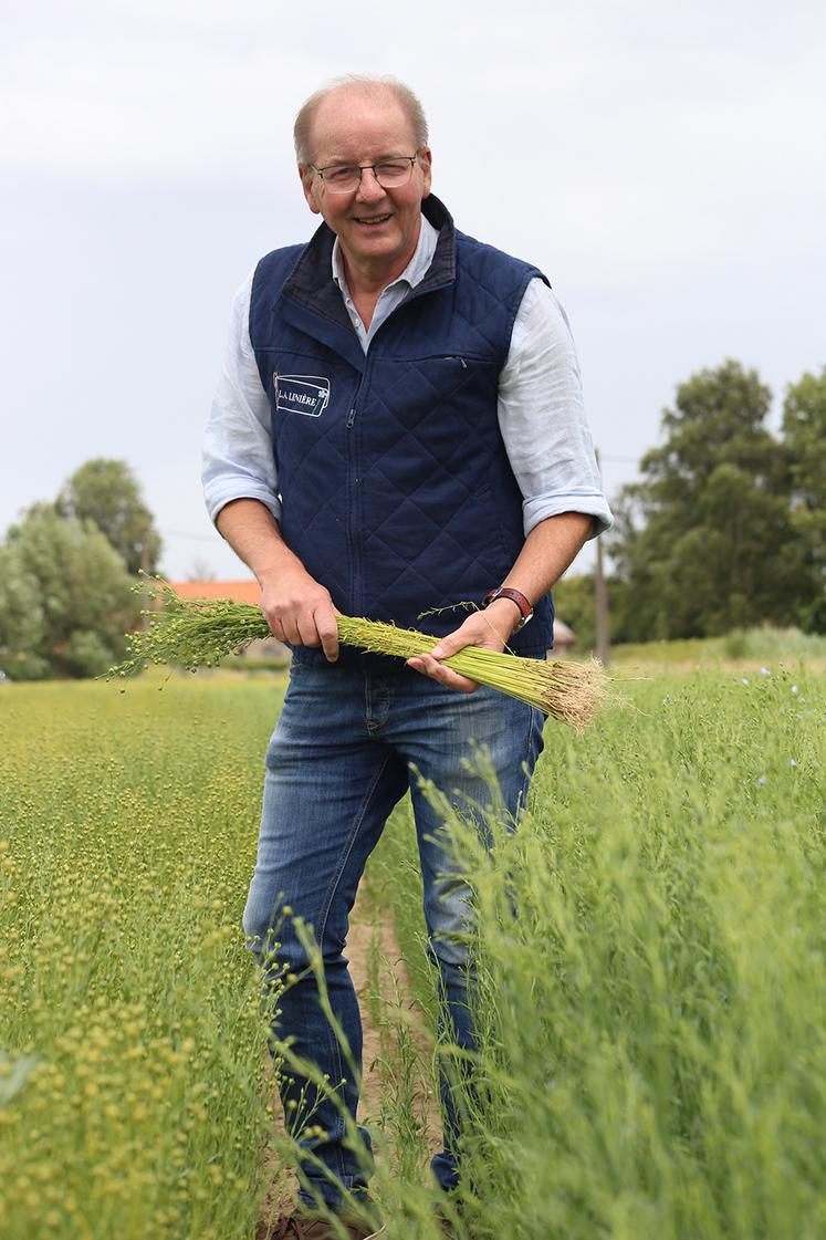 «Je suis un affranchi du lin.» C’est l’une des nombreuses punchlines qu’affectionne Arnaud Van Robaeys. Une manière de capter l’attention de son interlocuteur et, pourquoi pas, de transmettre sa passion pour cette plante herbacée. Chez les Van Robaeys, le lin est une histoire de famille. Les fameux camions rouges Van Robaeys Frères filent à travers la plaine depuis des lustres, de la Seine-Maritime à la Flandre maritime, en passant par le Nord, le Pas-de-Calais et la Somme. «C’est comme cela que j’ai connu ma femme. Ses parents étaient agriculteurs. Je venais faire la récolte, vers l’âge de vingt ans, et j’expliquais à l’agricultrice comment ça fonctionnait… Et voilà, nous nous sommes mariés…», révèle Arnaud Van Robaeys. Invariablement, la récolte repartait ensuite dans le Nord. Le teillage, ou préparation du lin, se fait à Killem depuis 1917. Ainsi allait la vie dans la grande famille des liniculteurs. Arnaud a quitté l’entreprise familiale en 2018, soit plus de cent ans après la création de Van Robaeys Frères par Camille, son grand-père, et les frères de ce dernier.