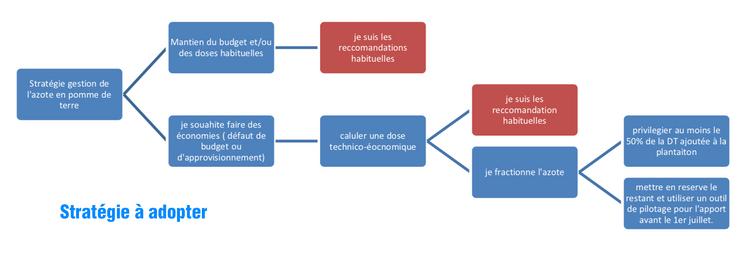 Des outils sont disponibles et opérationnel pour les producteurs de pomme de terre, comme le NTester et Jubil. Ces outils nécessitent un étalon surfertilisé et ils sont pertinents en conditions irriguées, pour assurer une valorisation maximale de l’azote apporté. Ces outils de pilotage permettent d’apporter ou non, en fonction du diagnostic, une dose de 40 kgN/ha qui avait été retranchée à la dose initialement calculée. La mesure doit être effectuée entre quanrante et soixante jours après la levée (30-50 en chairs fermes). D’autres outils, basés sur de l’imagerie satellite, sont en cours de développement.