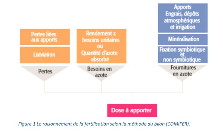 Deux sources d’azote sont disponibles pour la culture au cours du cycle : l’azote minéral présent dès la plantation et l’azote potentiellement minéralisable au cours du cycle (azote issue des matières organiques du sol, des résidus du précèdent ou des cultures intermédiaires, etc.).