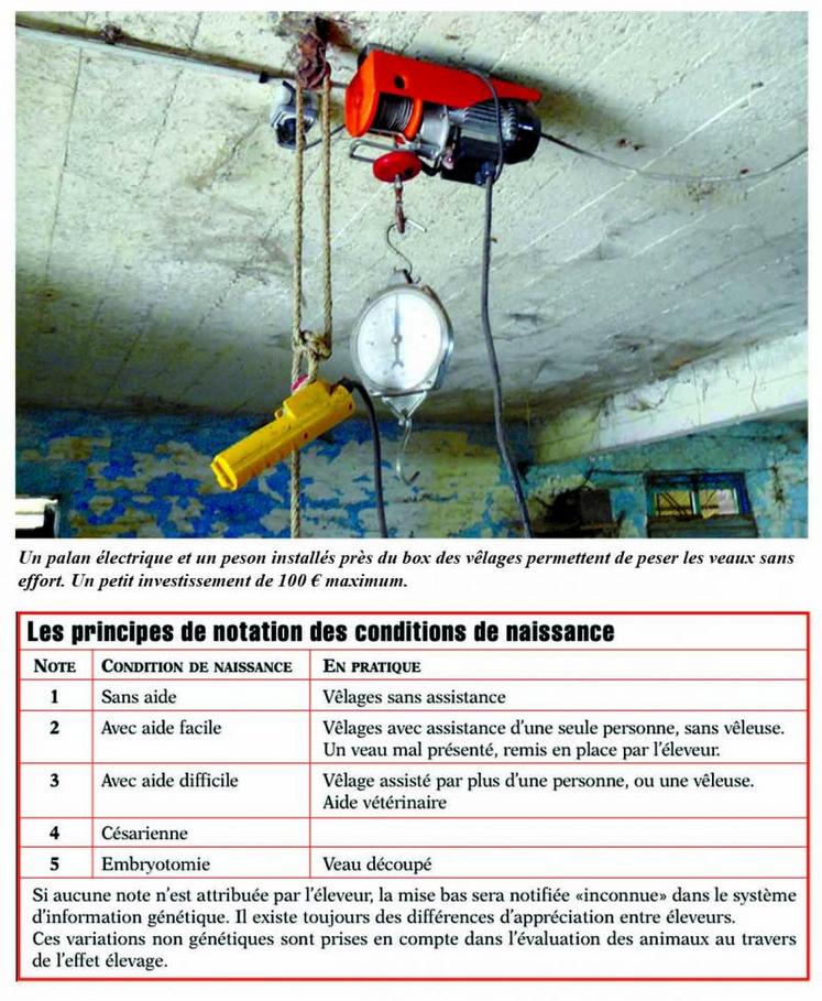 Lors des déclarations de naissance, vous devez renseigner une note de 1 à 5 qui indique la condition de naissance. Nous savons qu’il existe une certaine subjectivité dans les notes attribuées, et il est bon de se remémorer le principe d’attribution (voir tableau). Cette notation participe au calcul de l’index AVEL et détermine l’aptitude au vêlage des femelles. Il a été créé à la demande des éleveurs sélectionneurs considérant que l’index FN (facilité de naissance) était trop restrictif. En effet il semble normal que des vaches de grand gabarit donnent des veaux plus développés et donc plus lourds et en rapport avec le poids de leur mère. De même, un veau peut être lourd mais longiligne sans poser de problème au vêlage. Une vache avec un mauvais bassin ou fort conformée sera sujette à des difficultés de vêlage, même avec un veau de poids normal. L’AVEL est donc complémentaire de l’index FN.