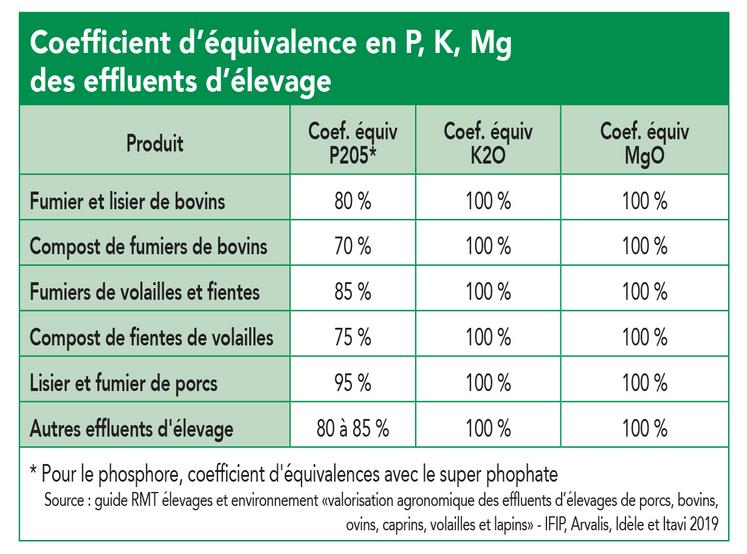Tous les produits organiques apportent également une fumure de fond (P, K, Mg…) dans des proportions variables, mais bien souvent non négligeables. N’oubliez pas que ces éléments sont très vite disponibles pour les cultures (cf. tableau ci-après). Leurs apports permettront de couvrir dans certains cas tout ou partie des besoins de la culture fertilisée et ce, quel que soit leur période d’apport.