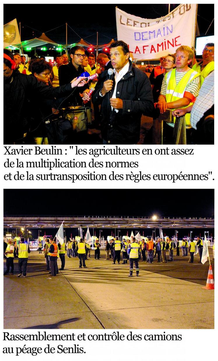 «C'est le dernier avertissement» a déclaré Xavier Beulin, le président de la Fnsea, en lançant la mobilisation nationale des agriculteurs contre l'overdose administrative, le 23 juin dans la soirée à Rungis. A l'appel des Fédérations régionales du Nord Bassin Parisien et du Centre, plus de 800 agriculteurs se sont rassemblés devant le marché d'intérêt national. «Nous sommes ici au coeur de l'excellence française. Pour pouvoir la développer, il faut qu'il reste des paysans.