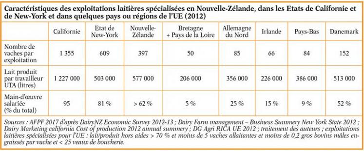 Dans les principaux pays laitiers, une hausse des coûts de production est constatée depuis 2004. «Cette augmentation s’explique en partie par l’évolution du montant des charges, mais aussi par des ruptures dans la conduite et la gestion des exploitations. L’accroissement de la taille des exploitations est à l’origine de ces ruptures (type d’alimentation, disponibilité du foncier, capitaux nécessaires, travail...).» Les exploitations françaises se distinguent par une part de main-d’œuvre salariée faible, entraînant une différence fondamentale. En France, le travail est analysé comme un facteur à rémunérer. Dans les élevages avec beaucoup de main-d’œuvre salariée, le travail est analysé comme un poste de charges.