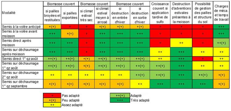 Divers critères de choix des dates et de techniques de semis existent (cf. tableau). En dehors du matériel disponible sur l’exploitation, il peut s’agir de la gestion des pailles ou de l’enherbement.