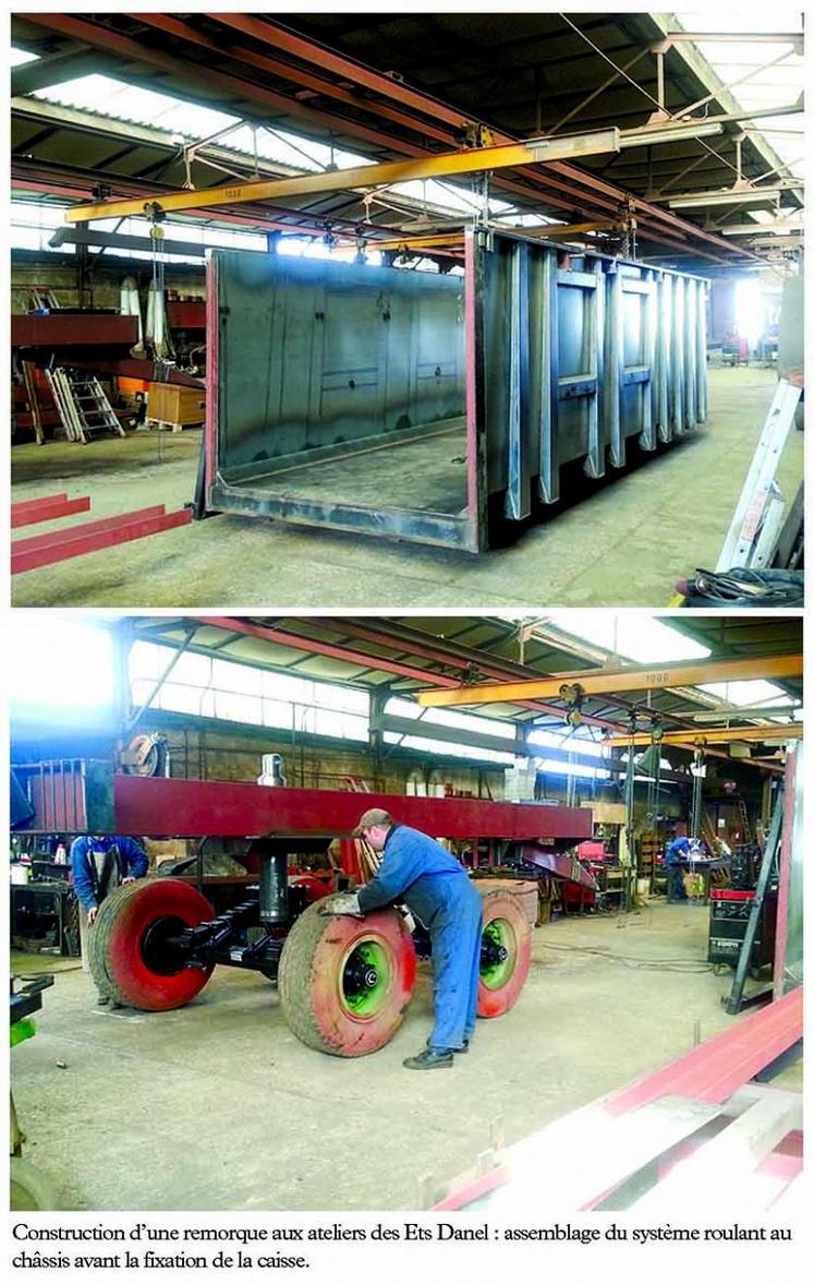 Pour la construction de ses matériels roulants, Danel achète le métal sous forme de plaques et de poutrelles en France ou en Belgique. Celles-ci sont ensuite découpées et assemblées dans ses locaux. Pour des raisons d’homologation, le système de roulage est acheté dans une usine du Pas de Calais. Le choix des roues est laissé au client. Dernière étape de la construction, le montage de la caisse et du système hydraulique. Chaque modèle est homologué par la Drire.
