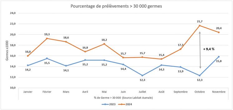 Depuis septembre, les germes de traite augmentent dans les élevages. Ce sujet, souvent ignoré, entraîne pourtant des pénalités importantes.