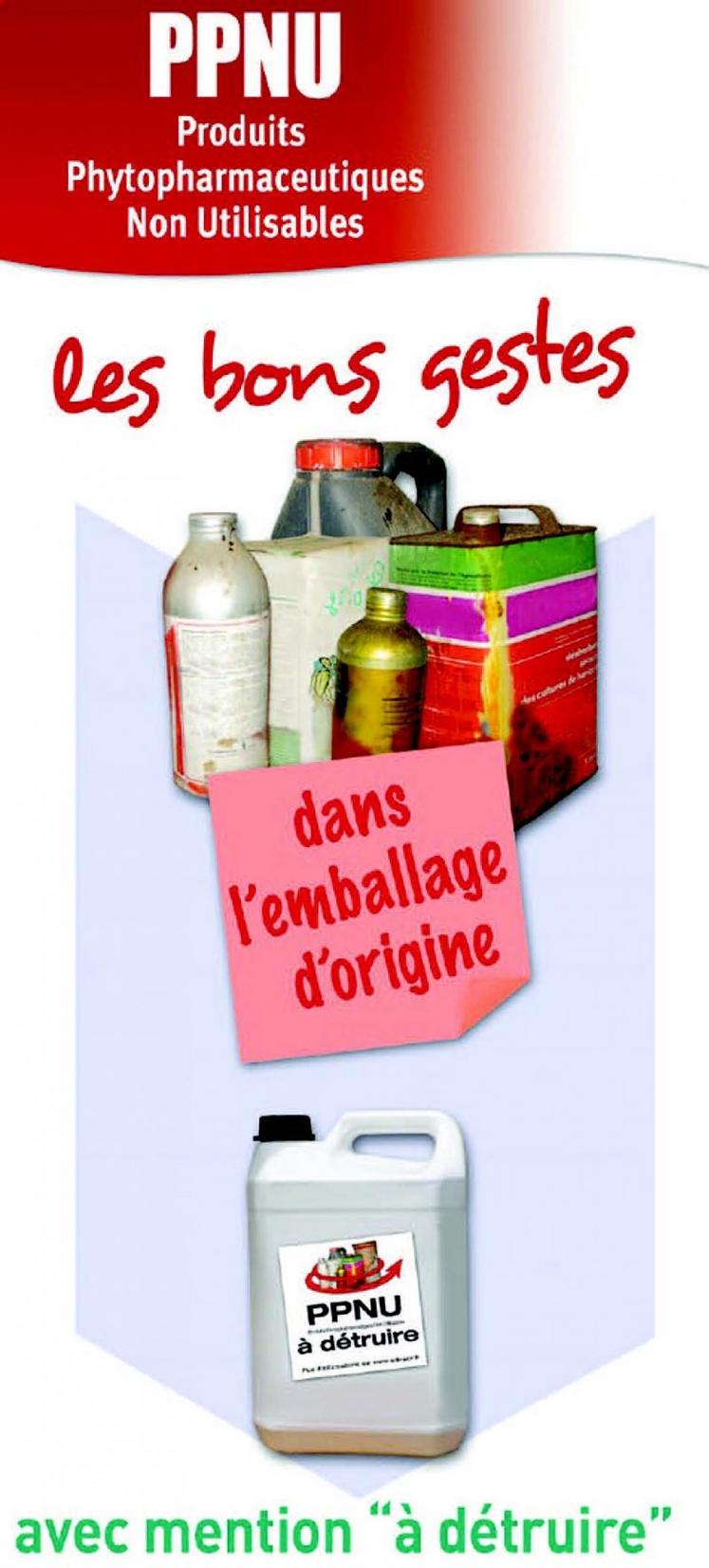 Depuis le Grenelle II (article 39), l’agriculteur dispose désormais d’une année après la date limite d’utilisation pour rapporter ces produits lors d’une collecte. Les PPNU sont reconnus comme étant des déchets dangereux (article R541-8 du code de l'environnement). Depuis le 5 juillet 2006, la détention de PPNU constitue une infraction répréhensible par la loi (article 253-1 de la loi d'orientation agricole). C'est pourquoi, ils doivent être traités dans des installations spécialisées dans le traitement des déchets toxiques et les agriculteurs doivent garder les justificatifs de leur élimination réglementaire qui peuvent être demandés par les services de l’Etat.