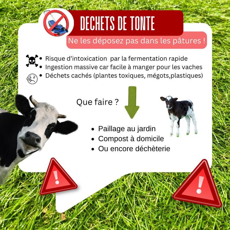 Le dépôt de déchets de tonte et de résidus végétaux dans les prairies d’élevage expose les bovins à des risques sanitaires. Via les réseaux sociaux, les Jeunes Agriculteurs de la Somme alertent sur les conséquences zootechniques et vétérinaires de ces apports non maîtrisés.