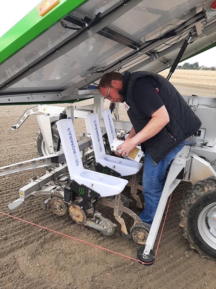 Pour les quelques agriculteurs ayant pu assister à la démonstration comme pour le responsable du service agronomique de l’interprofession, Yannick Delourme, le moment avait quelque chose d’excitant, car inédit : «Semer des chicorées, assurait M. Delourme, ce n’est pas simple. Il faut être précis, tant sur la profondeur que sur l’écartement, si l’on veut s’assurer d’une bonne levée». Réglé par Raphaël Deneuville, technicien robotique de l’entreprise Stecomat, le robot doit placer chaque graine de chicorée à 10,8 centimètres d’écart, à une profondeur comprise entre 0,5 et 1 centimètre. Couteau gradué dans une main et mètre ruban dans l’autre, Yannick Delourme était derrière la machine pour veiller au grain : «La préparation du sol doit être la plus homogène possible, détaille le technicien. À première vue, il s’en sort plutôt bien».