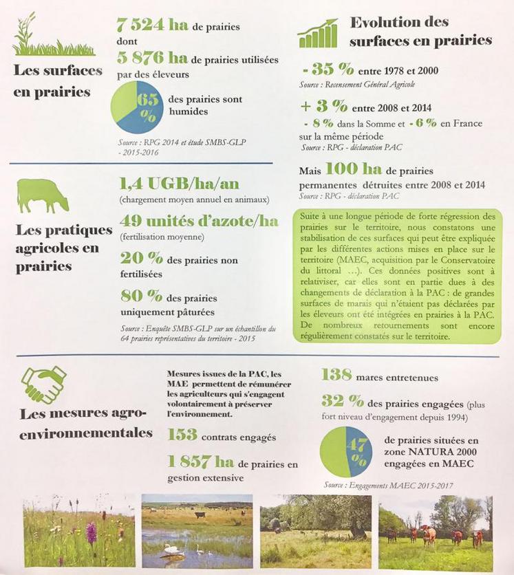 Cette zone bénéficie en fait d’un programme d’action depuis 2012 et un large travail y a été effectué : étude de l’évolution de l’agriculture sur vingt ans, acquisition de références technico-économiques dans cinquante exploitations d’élevage, animation des MAE, accompagnement individuel des éleveurs, mise en place d’un observatoire agro-écologique des prairies du territoire (cf. infographie).