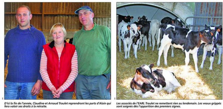 L’exploitation équipée depuis 1997 d’une salle de traite de 2x6 postes en épi a été mise aux normes en fin d’année 2003 et a pris la forme d’une EARL en 2008. Suite à l’installation de leur fils Arnaud en 2009, deux bâtiments ont été construits en 2010/2011. Le premier permet le stockage de paille, le second héberge les animaux à l'engraissement.