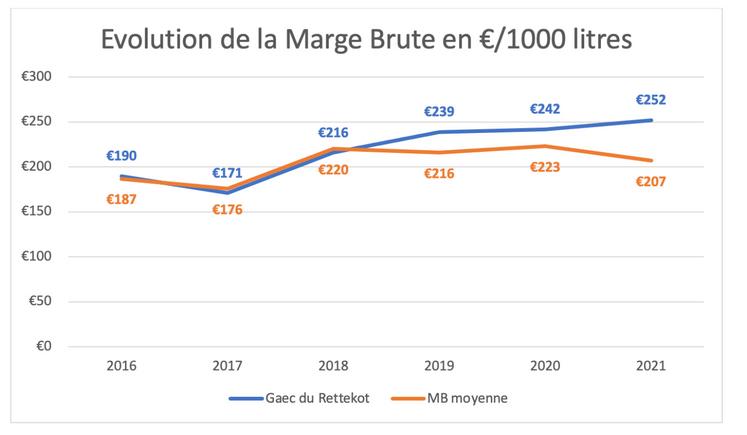 L’évolution de la MB montre l’impact des actions entreprises. Alors qu’ils étaient conformes à la moyenne des éleveurs calculant la MB avec ACE, les résultats du Gaec Rattekot lui sont désormais supérieurs. «En élevage l’amélioration d’une situation prend du temps. Par exemple, l’intégration des betteraves fourragères a été décidée en juin, après la remise d’un résultat marge. Il a donc fallu attendre le printemps suivant pour semer et l’hiver d’après commencer à voir le résultat technique. Il faut chercher à optimiser jour après jour et rester motivé.»