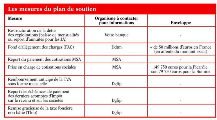 En juillet dernier, le gouvernement a annoncé une enveloppe de 50 millions d’euros dans le cadre du Fonds d’allègement des charges (FAC), soit 700 000 euros destinés à la Picardie et s’ajoutant aux 38 000 euros des deux FAC entamés cette année. Cette enveloppe, qui s’adresse aux éleveurs laitiers, allaitants et porcins, devrait permettre de couvrir certains frais financiers des agriculteurs, notamment une partie des intérêts des emprunts en cours ou encore du coût de la restructuration d’encours existants.