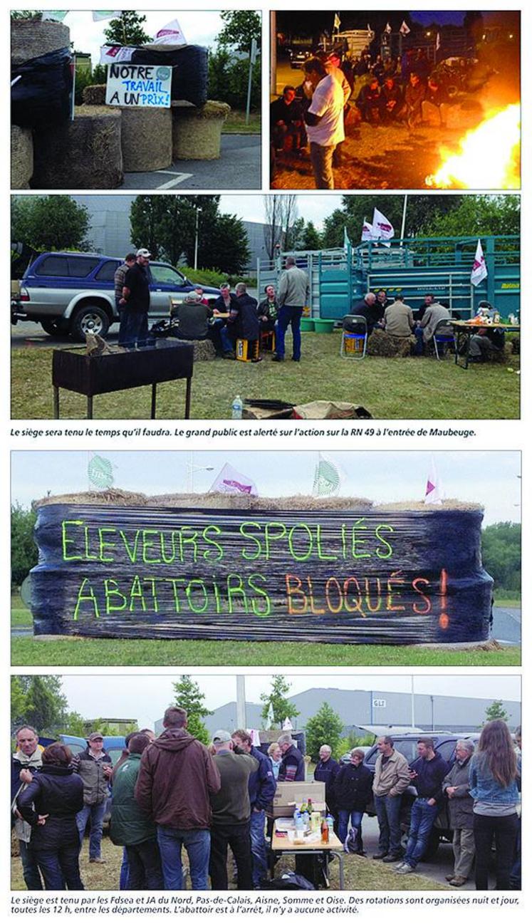 «Nous tiendrons le siège aussi longtemps qu’il faudra. C’est notre revenu et notre survie qui sont en jeu». C’est le mot d’ordre lancé par Jean-Christophe Rufin, président de l’Union agricole d’Avesnes lors de l’installation du barrage dimanche soir. Depuis, ils sont en permanence une cinquantaine devant les grilles de Bigard, venus en réponse à l’appel à mobilisation de la Fnsea, des Jeunes Agriculteurs et de la Fédération nationale bovine (FNB). Pour la grande région Nord-Pas de Calais-Picardie, c’est Feignies, l’un des plus gros site du nord de la France, qui a été retenu. L’action de blocage fait partie de la vingtaine d’opérations lancée sur toute la France, en préparation et dans l’attente des résultats de la table-ronde prévue le 17 juin au ministère de l’Agriculture. Elle rassemblera les principaux opérateurs de la filière et les producteurs. «Nous voulons un engagement de tous les acteurs de l’aval de la filière. L’engagement d’agir sans délai pour restaurer les prix payés aux producteurs, en mobilisant des actions concrètes qui doivent permettre à nos filières de s’inscrire durablement dans une logique de croissance et de valorisation des produits, et non dans la spirale de baisse des prix» précise Ludovic Cauchois, de la FNB.
