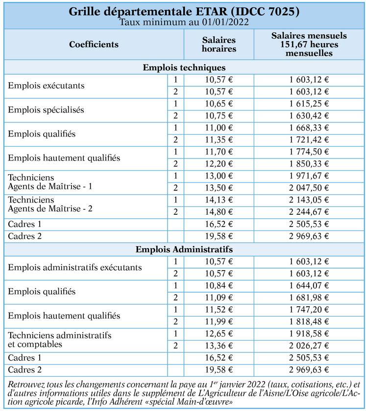 Voici la grille départementale des salaires au 1er janvier 2022 pour les entreprises de travaux agricoles et ruraux (IDCC 7025).