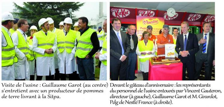 Mousline, la marque de la fameuse purée en flocons a cinquante ans. Guillaume Garot, ministre délégué à l'agroalimentaire, est venu fêter l'événement à l'usine de la Sitpa (groupe Nestlé) de Rosières-en-Santerre le 28 novembre dernier, là où sont fabriqués les produits Mousline. Cette marque "fait partie du patrimoine alimentaire français, de notre culture alimentaire", qui est "un gros atout pour notre industrie agroalimentaire", a affirmé le ministre venu surtout mettre en avant le côté exemplaire de l'entreprise en matière de développement durable et d'intégration dans son territoire.