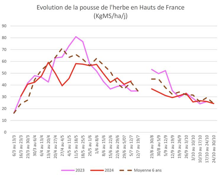 Par rapport à 2023, l’écart est encore plus significatif : 23 Kg MS/ha/j !