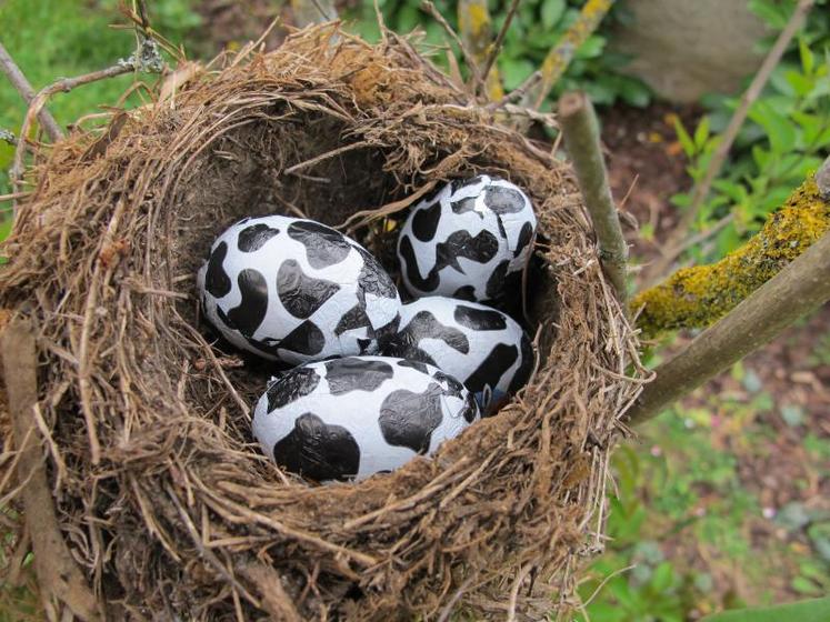 Techniquement, quelques ajustements sont à prévoir, mais rien de compliqué. « Elles avaient juste besoin d'un bec pour pouvoir picorer du grain comme des poules ». Un atelier découpage et collage a suffit pour confectionner des becs en carton, et voilà les soixante Prim'Holstein équipées d'un bec. « Cette activité a occupé mes enfants, eux aussi confinés, une journée entière », se réjouit-il.