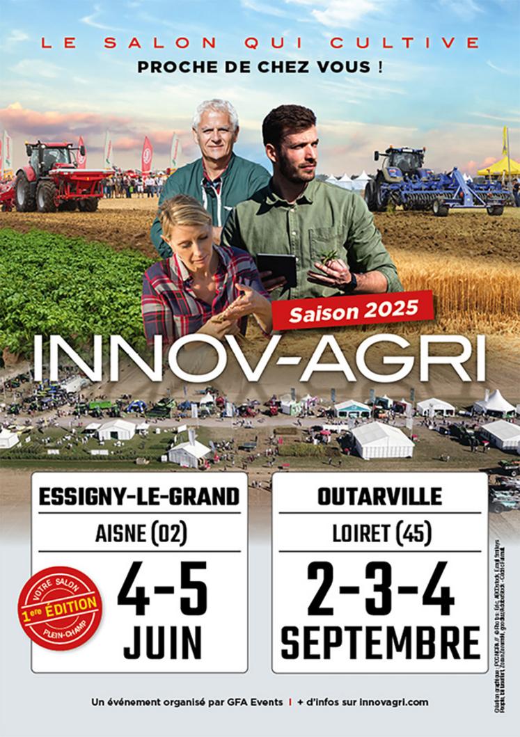 Le groupe NGPA, organisateur d’Innov-Agri, et les Chambres d'agriculture des Hauts-de-France s’associent pour proposer une édition exceptionnelle du salon en plein champ à Essigny-le-Grand, les 4 et 5 juin 2025.