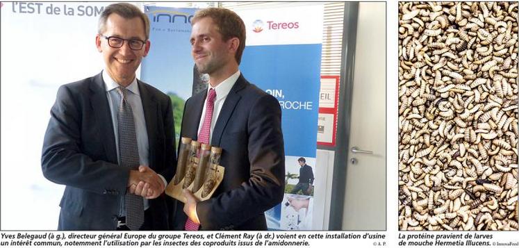 L’intérêt de ce partenariat est multiple. Pour l’usine locale Tereos, qui transforme 800 000 t de blé par an, soit environ 25 % du blé picard, «c’est le moyen de valoriser localement nos coproduits issus de l’amidonnerie. Aujourd’hui, ils sont expédiés vers la Bretagne, à destination de l’élevage bovin, car il y a une saturation de ce marché en Hauts-de-France, explique Yves Belegaud, directeur général Europe du groupe Tereos. InnovaFeed utilisera 20 % de nos coproduits pour nourrir leurs insectes».