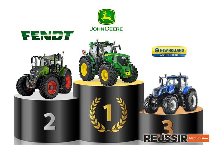 Fendt prend la deuxième place grâce à une forte progression (+ 2,8 points) et atteint 15,6 % de parts de marché, un seuil jamais réalisé jusque-là par la marque allemande. New Holland passe ainsi en troisième position avec une baisse de 1,4 point par rapport à 2023.