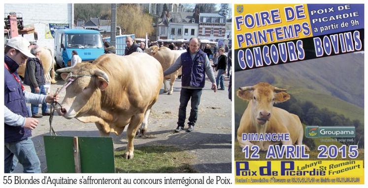 Dix-neuf éleveurs venus de la Somme, de l'Oise, de Seine-Maritime et du Pas-de-Calais sont inscrits. Ils y présenteront 55 Blondes d'Aquitaine. Le concours de Poix est un tremplin pour le concours national de septembre.
