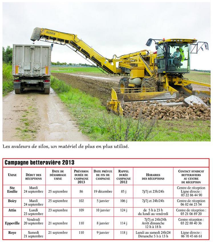 A noter enfin, le développement de l'utilisation des avaleurs de silos. Saint Louis Sucre réfléchit actuellement sur la pertinence d'investir dans ce type de matériel l'an prochain. Des matériels à trémie doivent en effet être remplacés. Une étude va être menée sur le secteur de Roye. Les planteurs du Santerre seront consultés.