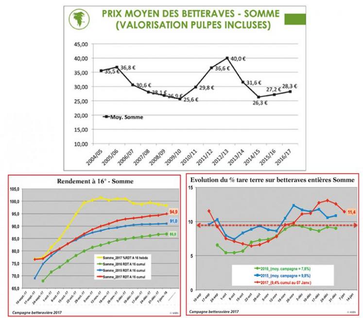 On l’a écrit maintes fois : la campagne betteravière dans la Somme, qui devrait se terminer fin janvier, voire dans la première semaine de février, suivant les usines sucrières, affiche des rendements qui redonnent du baume au cœur aux planteurs. Car nombreux sont ceux, en effet, à s’inquiéter des incidences de la fin des quotas sur les prix. Avec des rendements, ce mois-ci, qui atteignent 95 t/ha à 16°, un rendement racine à 79 t/ha et une tare terre qui restera inférieure à 10 %, les résultats sont incontestablement au rendez-vous.