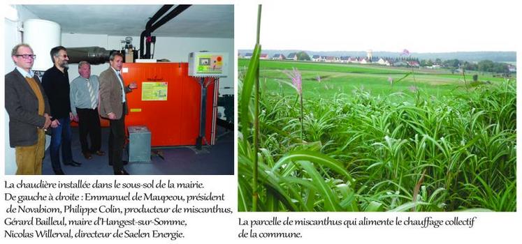 En 2007, Philippe Colin, agriculteur à Hangest-sur-Somme, s'est lancé dans la production de miscanthus. Il a d'ailleurs converti progressivement la totalité de son exploitation à cette culture, avec le concours de la société Novabiom (*). Il valorise depuis le miscanthus sous forme de paillage horticole pour des collectivités de la région, de litière pour chevaux, mais aussi en tant qu'aliment pour les bovins. Le débouché énergétique était resté jusque là très limité puisqu'il se limite au chauffage de l'habitation et des bureaux de l'agriculteur. Jusqu'à ce que le maire d'Hangest-sur-Somme, Gérard Bailleul, réalise qu'il existe sur place une ressource énergétique renouvelable qui pourrait être utilisée pour le chauffage collectif de sa commune qui compte environ 700 habitants.