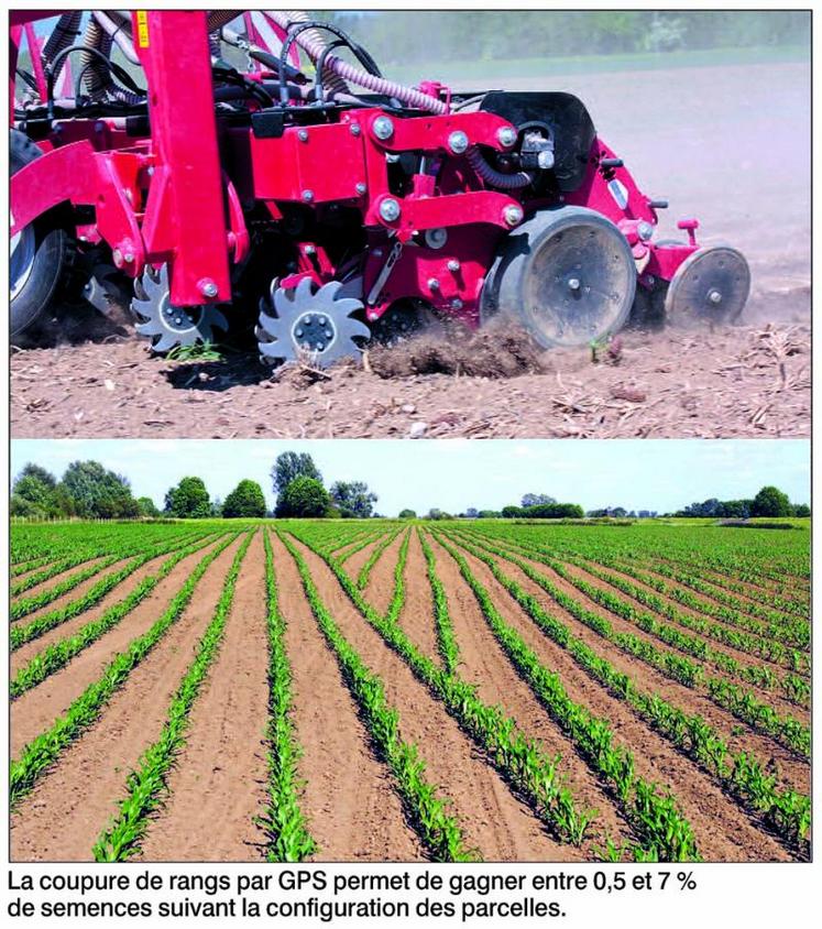 Comme pour les pulvés et les épandeurs d’engrais, les constructeurs proposent des coupures de rangs pouvant être pilotées par GPS.