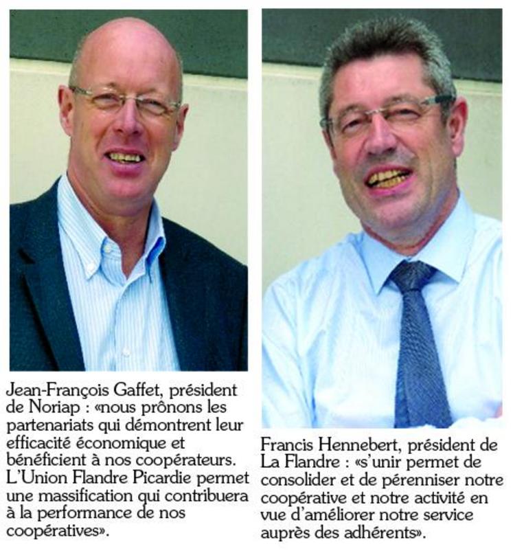 «Les coopératives La Flandre et Noriap vont collaborer au sein d’une Union destinée à développer des synergies et améliorer leurs performances», indiquent les deux entreprises dans un communiqué du 18 mai dernier. Dénommée Union Flandre Picardie, celle-ci sera opérationnelle au 1er juillet 2015. Elle servira les deux coopératives dans un cadre territorial élargi en conservant l’autonomie,l’identité propre et les valeurs de chaque coopérative.