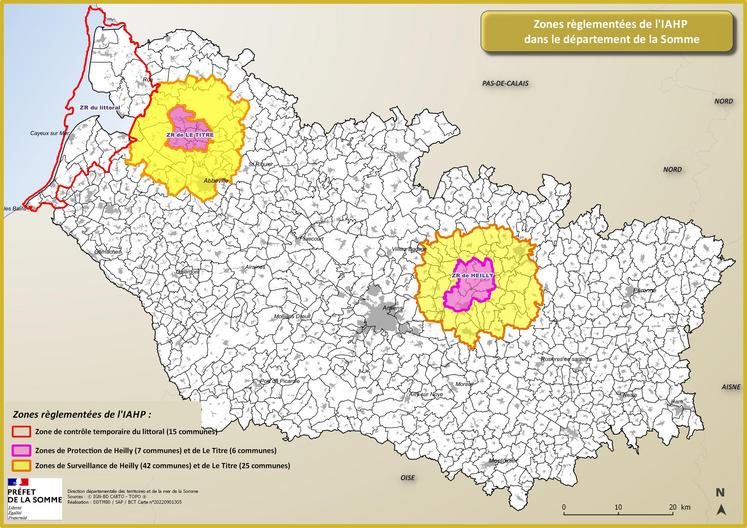 À chaque fois, le protocole mis en place est le même : «Pour éviter tout risque de diffusion du virus à d’autres oiseaux du territoire, des zones réglementées de protection (ZP) et de surveillance (ZS) sont mises en place dans un rayon de 3 et 10 km autour des exploitations infectées», indique la préfecture de la Somme. Dans ces périmètres, tous les lieux de détention de volailles et d’oiseaux captifs sont soumis à des prescriptions spécifiques. Sont interdits : les mouvements de volailles et autres oiseaux captifs , l’introduction ou la sortie d’œufs à couver, la mise en place dans les exploitations de volailles et autres oiseaux captifs, les rassemblements d’oiseaux tels que les foires, marchés et les expositions, l’évacuation et l’épandage des fientes, litières et fumiers de volailles provenant des exploitations situées dans le périmètre réglementé, le transport de viandes de volailles provenant d’établissements d’abattage, agréées ou non, la sortie d’œufs de consommation. Autrement dit, une activité à l’arrêt pour les éleveurs.