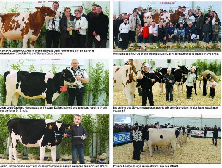 Le troisième concours Prim’Holstein s’est déroulé lundi 1er avril lors de la foire de Montdidier. 73 animaux présentés par 23 élevages de la Somme et de l’Oise ont concouru pour le titre de Grande championne. Philippe George, le juge, a finalement décerné ce prix convoité à Coc-Fah-Red de l’élevage de David Dallery à Bailleul, dans la Somme. Le potentiel de cette vache s’était déjà révélé lors de la foire de Montdidier 2012 avec le titre de championne génisse. Mais c’est surtout lors d’une confrontation européenne à Fribourg en Suisse en mars dernier, qu’elle s’est illustrée en remportant un troisième prix de section. Ce qui la hisse au rang de meilleure vache Prim’Holstein rouge de France. Jean-Louis Gauthier, responsable de l’élevage Dallery, a reçu avec fierté ces nouvelles récompenses, fruit d’un travail quotidien et passionné depuis de nombreuses années.