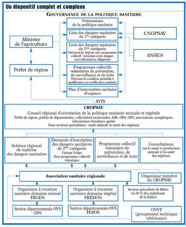 - Les Conseils d’orientation de la politique sanitaire animale et végétale : ces «parlements» du sanitaire sont créés tant au niveau national (CNOPSAV) que régional (CROPSAV).