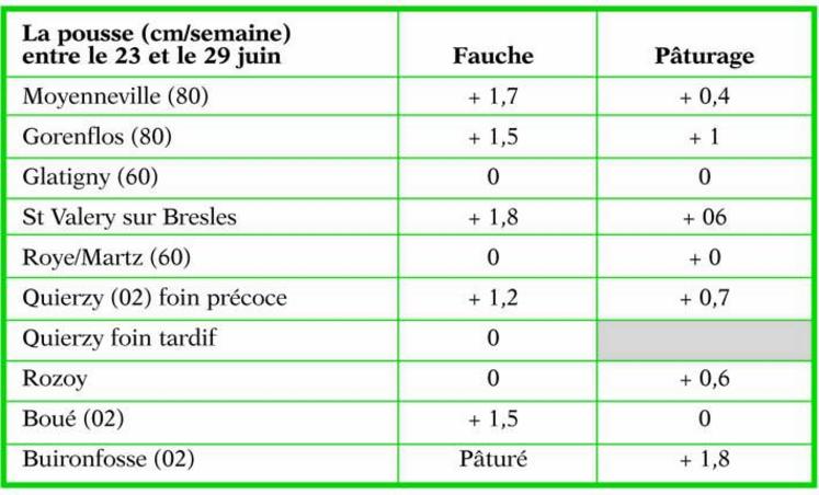 La pousse de l’herbe est cette fois bien ralentie, avec quelques exceptions dans les secteurs qui ont eu de l’eau le 21 et 22 juin. Les fortes températures annoncées ne vont pas arranger les choses : nous serons à la merci de pluies d’orage, qui par définition sont très localisées...