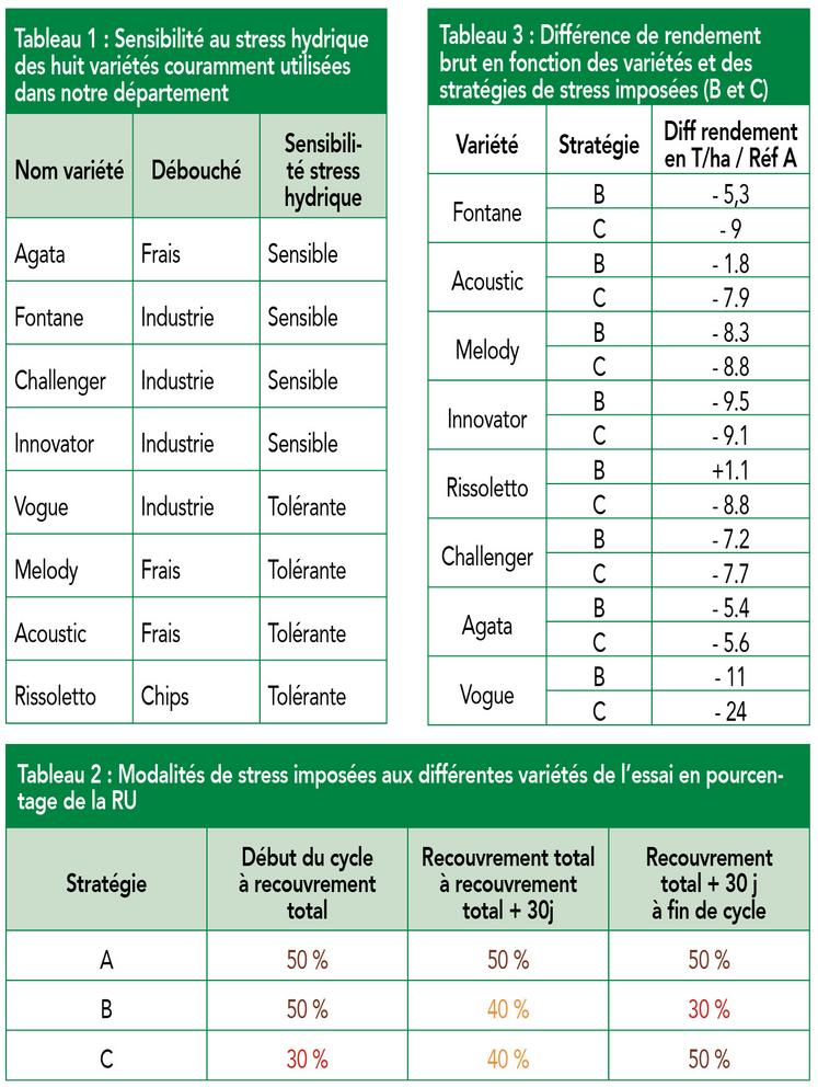 pénaliser le rendement) – aller plus loin dans la caractérisation du comportement des variétés de pommes de terre et rechercher la conduite d’irrigation optimale pour chacune d’elles.