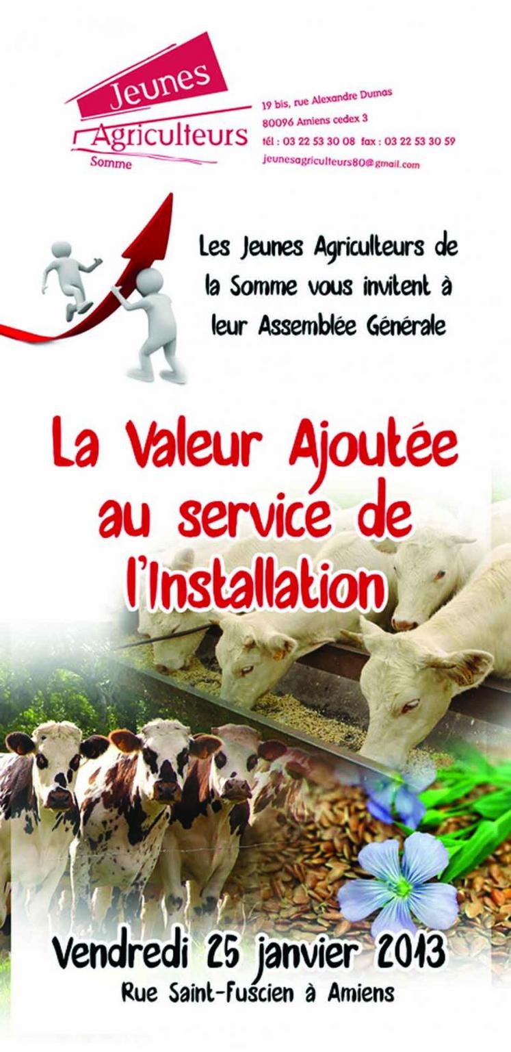 Après une matinée en huit-clos, l'après-midi sera ouvert à toutes et à tous. Après le rapport d'activités qui remettra au goût du jour l'actualité de Jeunes Agriculteurs de la Somme durant l'année écoulée, un intervenant de CER France Somme expliquera la notion de valeur ajoutée en système laitier, en système industriel ou encore en circuit court.