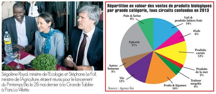 Continuer les efforts pour soutenir le développement de l’agriculture biologique demeure donc indispensable. C’est dans cette optique que Ségolène Royal, ministre de l’Ecologie, et Stéphane Le Foll, ministre de l’Agriculture, sont venus lancer cette nouvelle édition du Printemps Bio lors de la Grande Tablée, mercredi 28 mai au Parc de la Villette, à Paris. La ministre de l’Ecologie s’est «réjouie de voir le ministre de l’Agriculture engagé dans la bio» et a salué ce fait «nouveau, ce partenariat entre deux ministères d’habitude en opposition» pour une filière d’avenir en matière de transition écologique et de biodiversité.