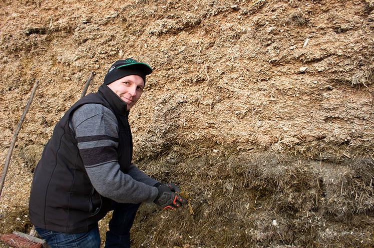 «Les formations en agriculture bio m’ont bien aidé pour établir un itinéraire technique qui corresponde aux conditions de cultures et aux objectifs de récolte. Je me suis aussi inspiré des expériences d’agriculture de conservation. Mais je ne suis ni bio, ni en agriculture de conservation.» En août 2021, l’éleveur se lance en semant, avec un semoir à disque, un mélange composé de 80 kg de seigle, 35 kg de pois fourrager et 10 kg de vesce par hectare. Au printemps, il apporte un engrais complet (NPK) à hauteur de 30 unités. Une première coupe est ainsi réalisée en avril 2022 et récoltée en ensilage. Immédiatement après, Jean-Christophe complète la culture avec un semis de 50 kg d’avoine et 30 kg de pois protéagineux. Malgré le manque d’eau en 2022, deux coupes ont tout de même été réalisées en juillet et en septembre. «Nous avons surtout fauché pour éviter que tout grille et étouffe, le rendement n’était forcément pas à la hauteur, mais nous avons été agréablement surpris par la qualité.» Après la coupe de septembre, le couvert est facilement désherbé pour semer une céréale d’hiver.