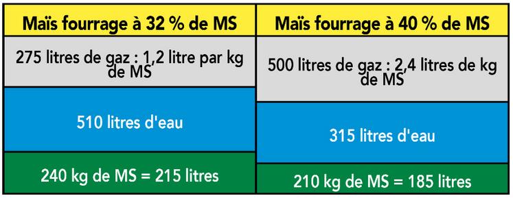 À 30 % de MS, il y a 1 m3 d’air à chasser par tonne de MS. En condition optimum, en 3 à 4 heures il n’y a plus d’oxygène dans le silo et les bonnes fermentations démarrent. À plus de 35 % de MS, l’air enfermé représente 3 m3 par tonne de MS, chaque m3 de silo est donc plus difficile à tasser.