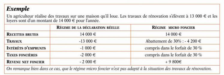 Pour générer un déficit, il faut impérativement que les revenus fonciers soient soumis au régime réel et non au régime micro foncier. Dans le cadre du micro foncier, réservé aux contribuables ayant moins de 15 000 € de recettes annuelles de location nue par an, un abattement forfaitaire de 30 % représentant l’ensemble des charges est appliqué sur les recettes pour déterminer le revenu net. Ce régime micro est simple à utiliser mais il ne permet pas de créer de déficit et ses charges sont limitées à l’abattement forfaitaire de 30 %. Ce régime n’est pas recommandé lorsque les charges représentent plus de 30 % des recettes, surtout quand le bien a fait l’objet de travaux de rénovation.