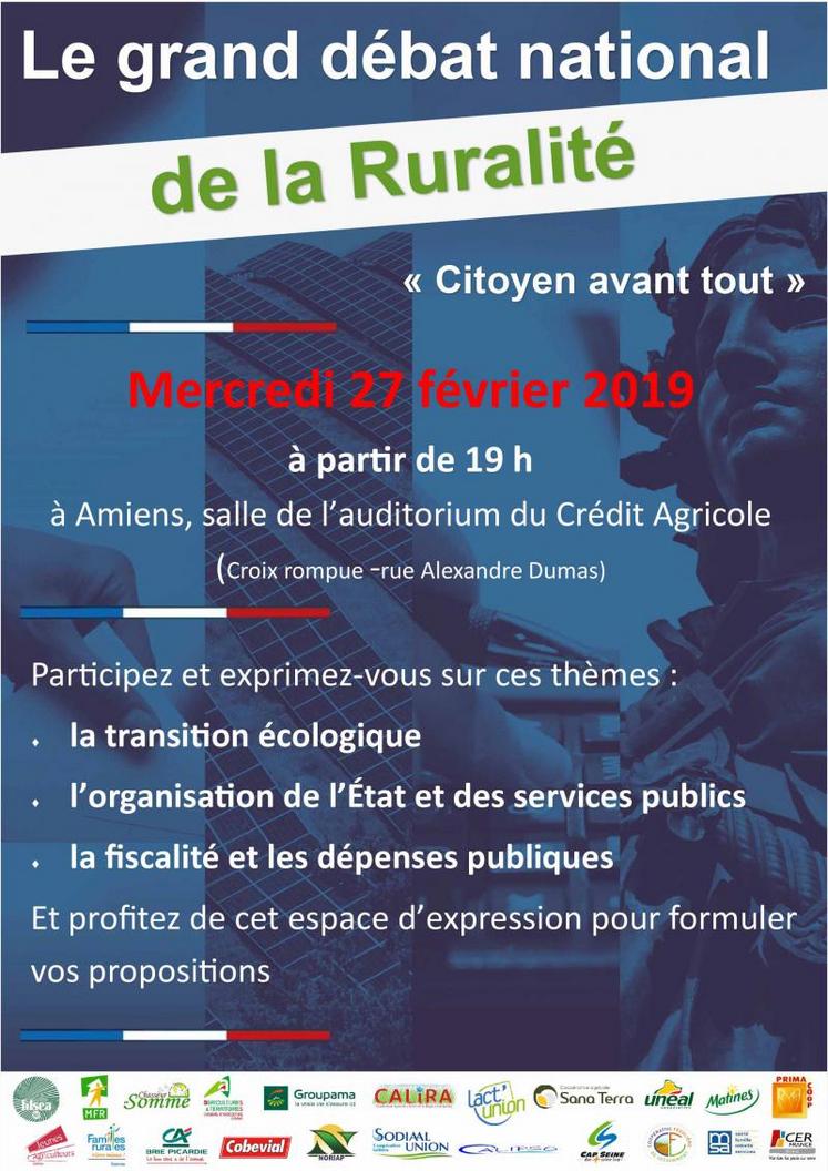 Le grand débat, sur le thème de la ruralité, se déroulera à Amiens le mercredi 27 février, à 19h, à la salle de l’auditorium du Crédit agricole de la Croix rompue.