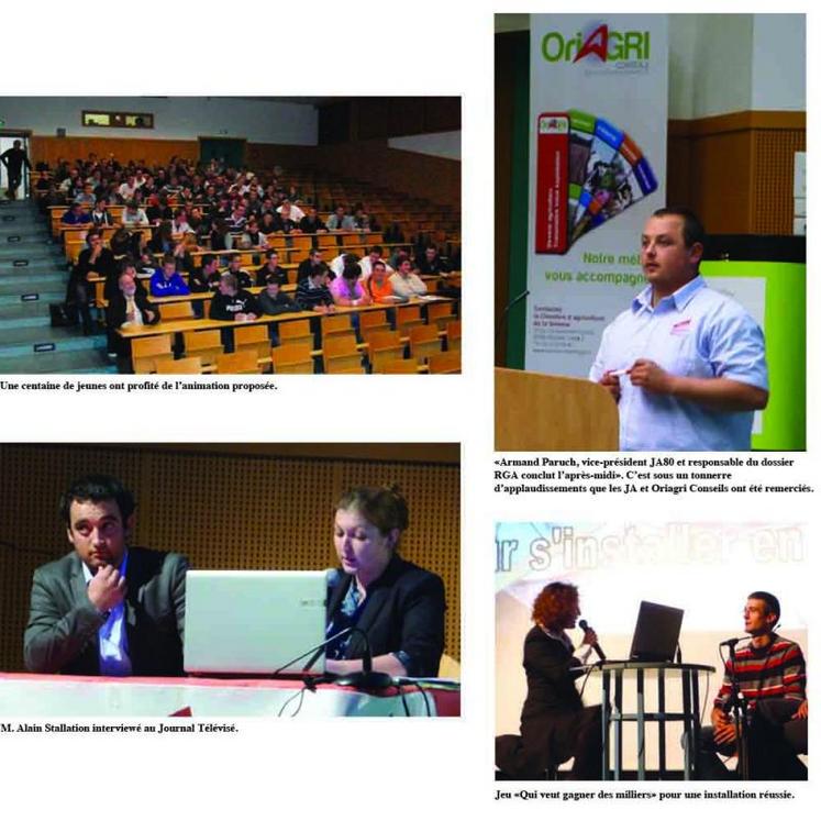 Les Jeunes agriculteurs de la Somme et Oriagri Conseils ont animé le jeudi 11 octobre une après-midi sur l’installation en agriculture auprès d’une centaine de jeunes venus du lycée du Paraclet, du Cfppa du Paraclet et de l’UFA de Ribemont sur Ancre. Cette animation venait en complément de la «Journée Installation», événement annuel organisé par les Jeunes Agriculteurs, qui aura lieu l’an prochain en mars 2013.