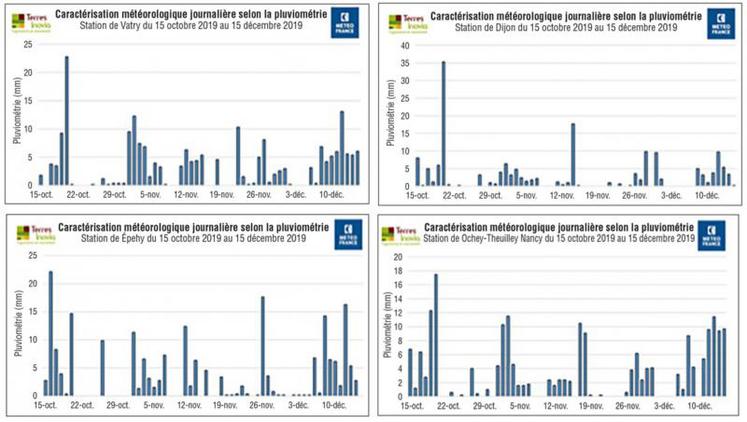 Avec des pluies abondantes dès début novembre, de nombreux agriculteurs ont été pris au dépourvus pour leur semis de pois d’hiver. Si les dates de semis précoces fin octobre ont pu bénéficier de pluies faibles et de rares accalmies selon les secteurs, ce n’est pas le cas des semis de novembre où des pluies abondantes et régulières se sont abattues sur une grande partie de la zone Nord-Est, rendant les sols non praticables.