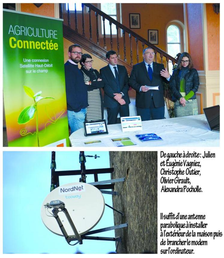 La toute première connection a été inaugurée dans l’Aisne le 18 novembre, chez Julien Vagniez, agriculteur à Coucy-la-Ville, en présence de Bruno Lemoine, président de l’arrondissement de Chauny pour l’USAA, Olivier Girault, délégué régional Orange Picardie, Christophe Outier, directeur commercial NordNet et Alexandra Pocholle, responsable des relations institutionnelles France chez Eutelsat. «Grâce à la connection haut-débit mise en place cet été, je peux naviguer sur internet sans problème et très rapidement. Le passage au satellite nous permet de passer un certain nombre de commandes en ligne, d’envisager d’utiliser des logiciels en mode SAAS (type logiciels de comptabilité), de regarder des vidéos et également de gagner du temps lors des téléchargements d’e-mails volumineux», a expliqué Julien Vagniez, se disant soulagé face à l’enregistrement de son dossier PAC qu’il réalise en ligne.