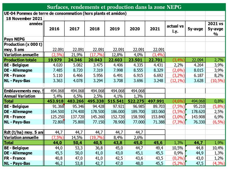 En 2021, la superficie de pommes de terre dans la zone NEPG a diminué d’environ 24 000 ha, passant de 522 000 à 498 000 ha.