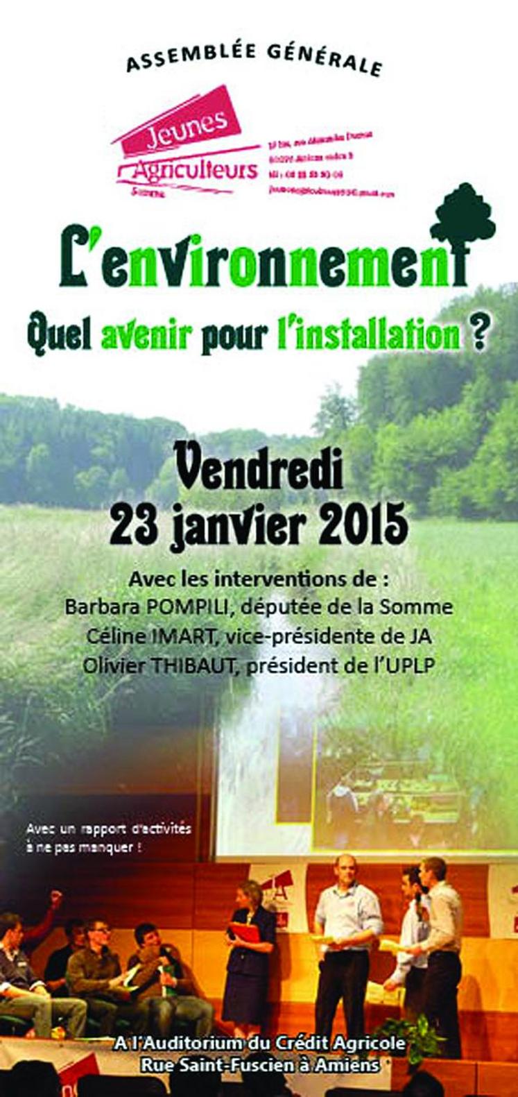 Puis un débat, animé par François Magnier, directeur de la Fdsea de la Somme, permettra de traiter pleinement du sujet de l’environnement. Celui-ci se déroulera avec les interventions de Barbara Pompili, députée de la Somme (Europe Ecologie Les Verts), Céline Imart, vice-présidente de Jeunes Agriculteurs (en charge du dossier environnement) et Olivier Thibaut, président de l’UPLP.
