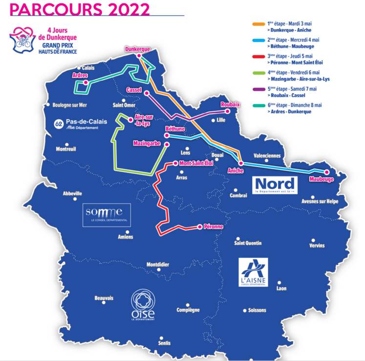 Quatre, c’est une référence au nom de l’épreuve qui compte en réalité six étapes. La première s’est déroulée mardi, entre Dunkerque et Aniche. La dernière aura lieu dimanche 8 mai, au départ de la ville d’Ardres pour rejoindre Dunkerque.